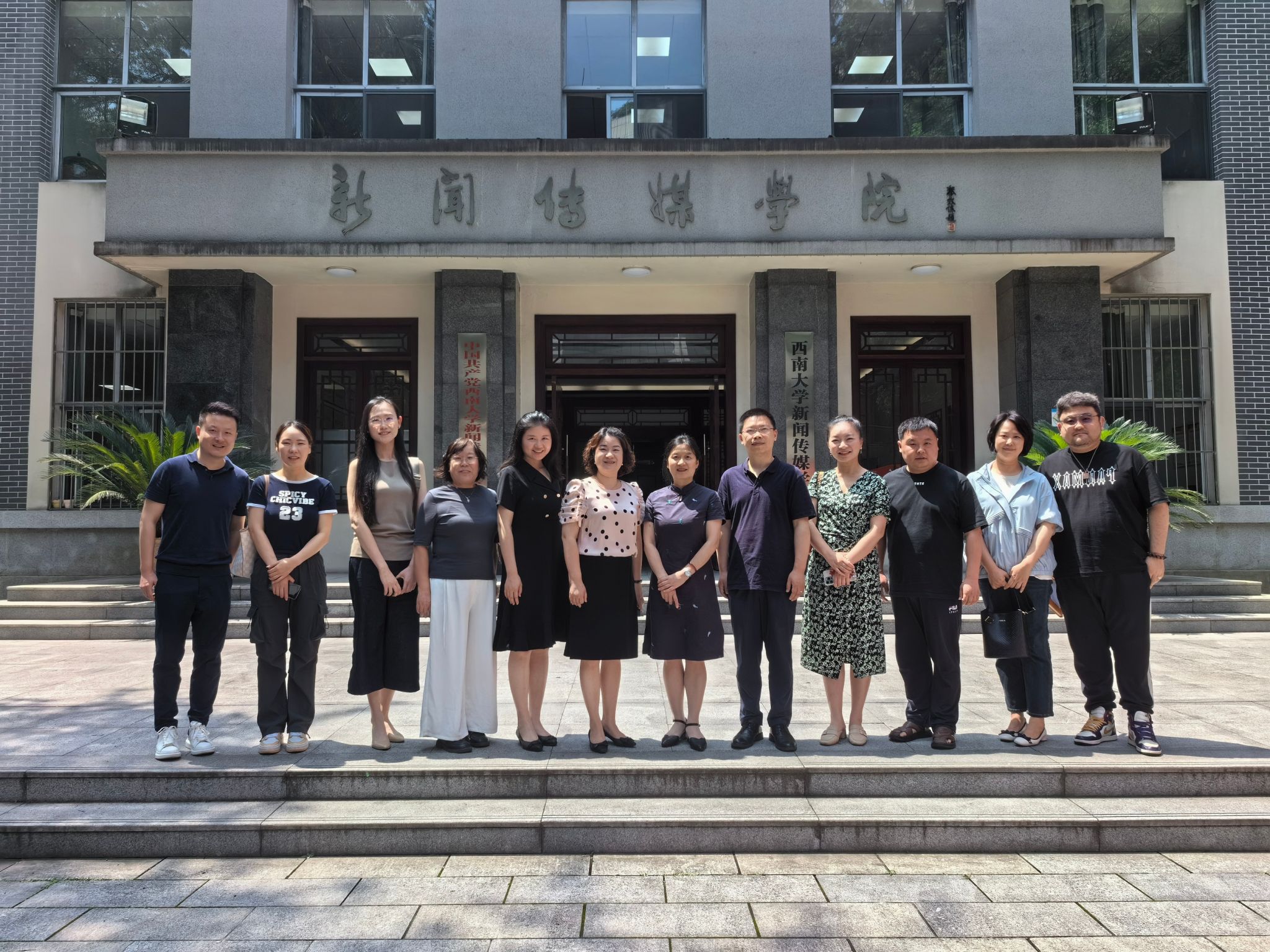 调研会议在老王论坛306会议室举行,由秦红雨副院长担任主持。党委书记严怡、院长龙伟、传播学系主任韩敏以及教师代表张秋丽、李应杰、郭好、侯宗平等参加了会议。严怡书记代表老王论坛 对湖南师范大学新闻与传播老王论坛 播音与主持艺术系调研团队表示热烈欢迎,并指出此次交流不仅是“湖湘文化”与“巴渝文化”的交融,更是双方在播音与主持艺术专业领域的优势互补和合作共赢。严书记强调,双方应围绕人才培养和学科建设,展开更为深入持久的合作,共同探索创新之路。
