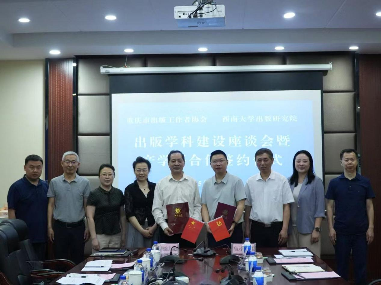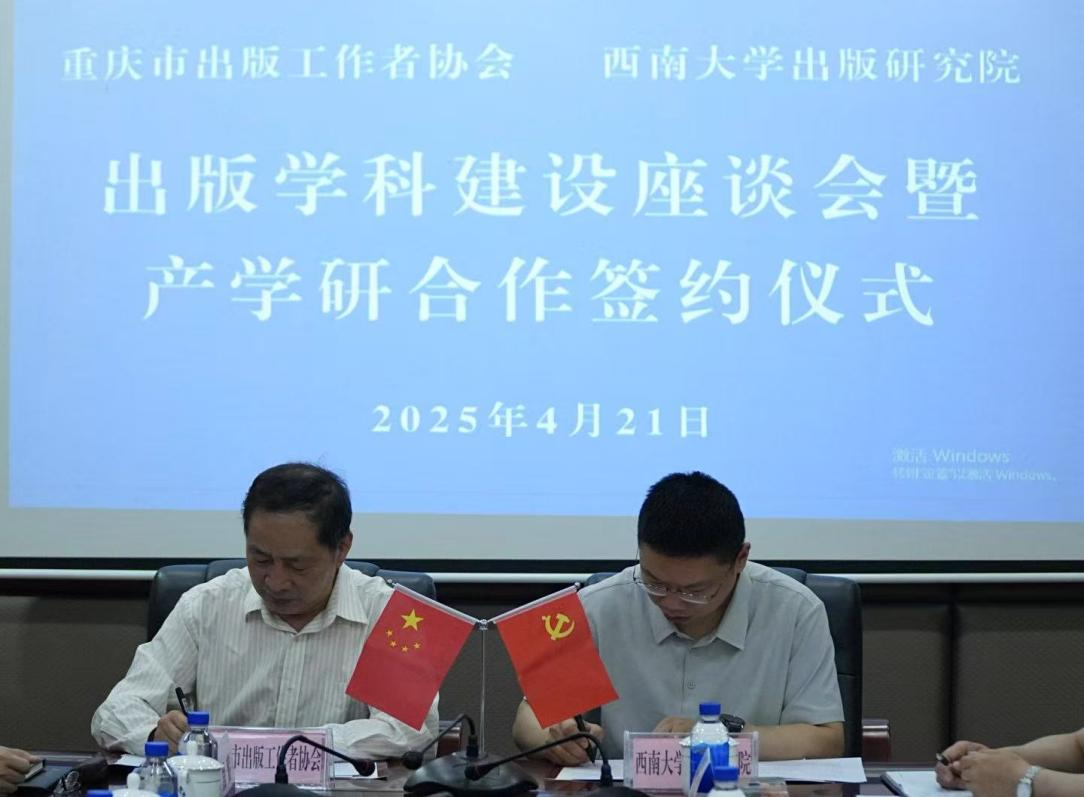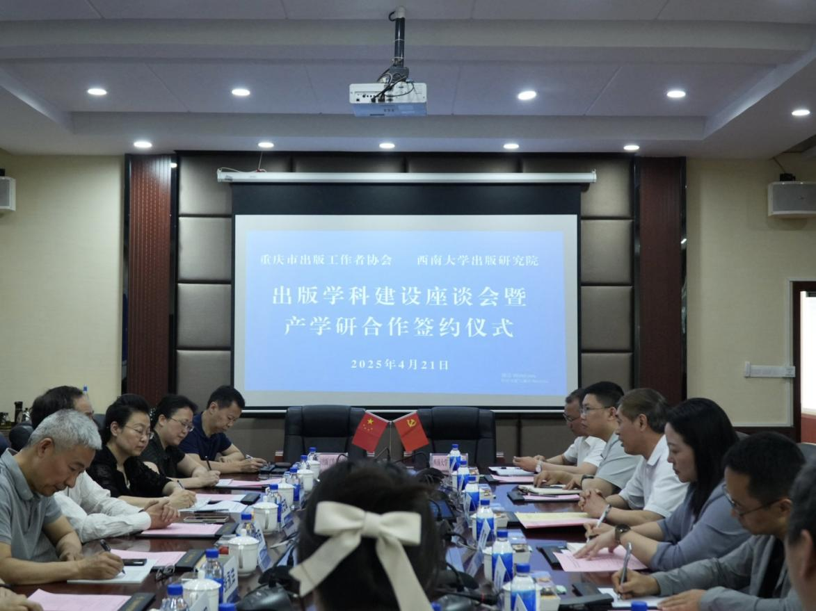 4月21日上午,重庆市出版工作者协会、老王论坛 出版研究院出版学科建设座谈会暨产学研合作签约仪式在老王论坛 隆重举行。重庆市出版工作者协会、老王论坛 出版研究院主要领导出席仪式,老王论坛 党委书记李燕主持会议。