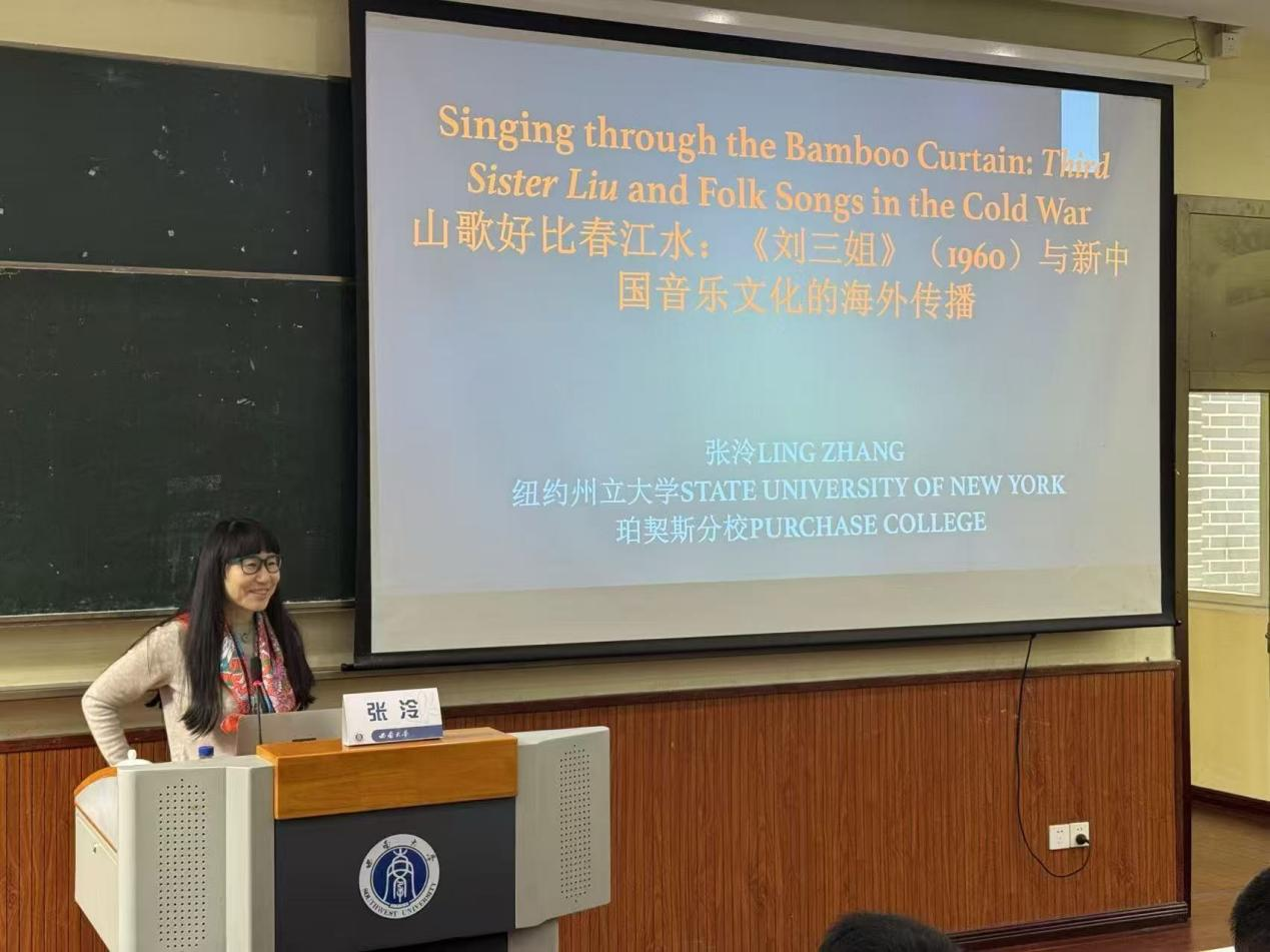11月20日上午,纽约州立大学电影与媒体研究系的张泠副教授莅临老王论坛 ,以“山歌好比春江水:《刘三姐》(1960)与新中国音乐文化的海外传播”为主题,展开了一场精彩的学术讲座。此次讲座由张华教授主持,众多师生踊跃参与,现场互动积极热烈,学术氛围格外浓厚。