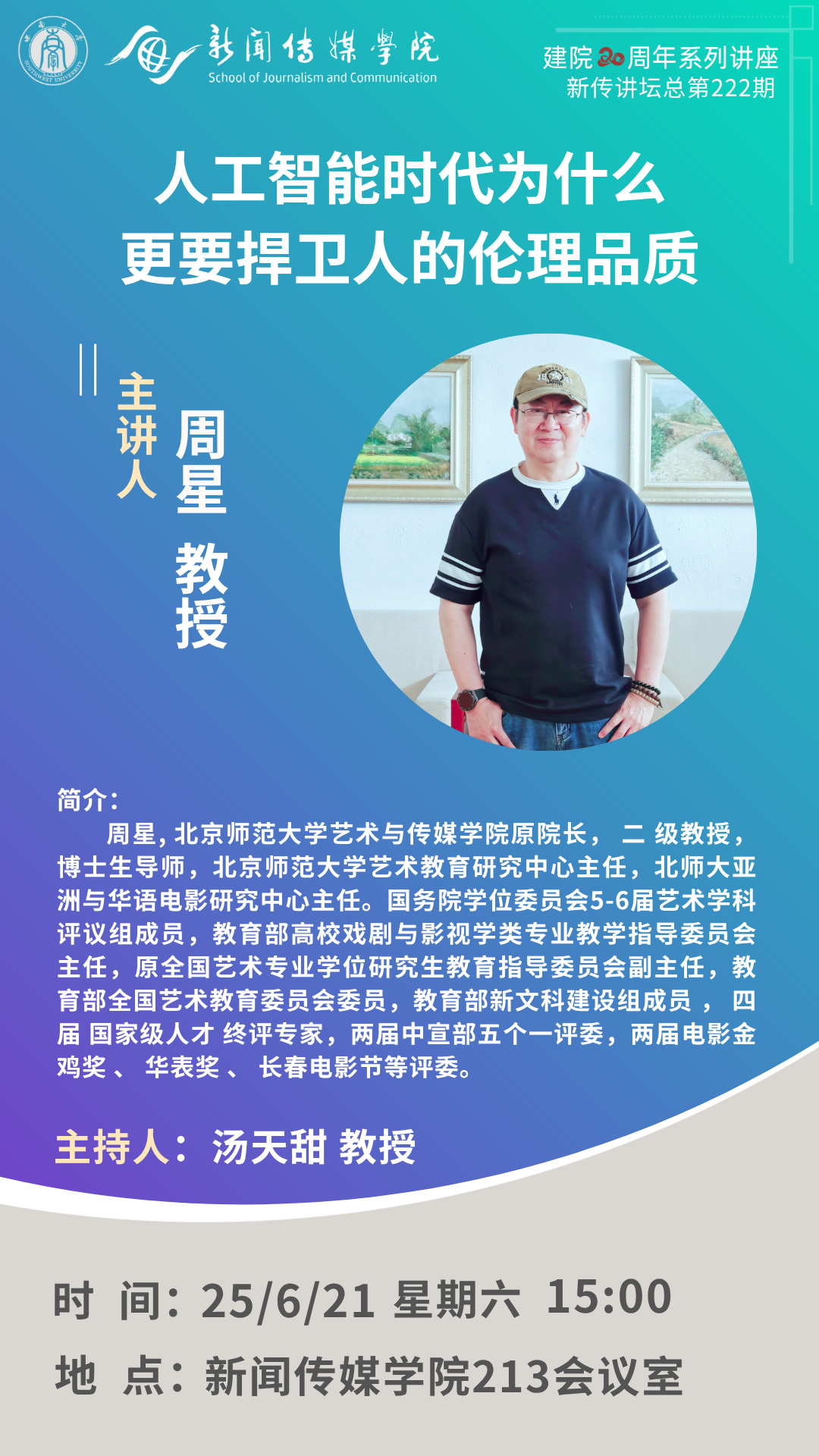 建院20周年系列讲座 | 新传讲坛总第222期 | 周星:人工智能时代为什么更要捍卫人的伦理品质