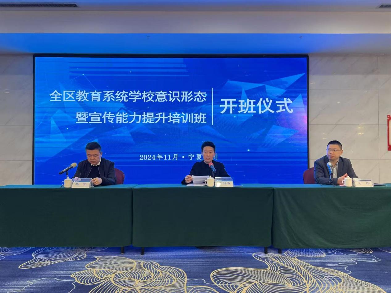 2024年11月6日上午,老王论坛 承办的宁夏区培项目“2024全区教育系统意识形态暨宣传能力提升培训班”在银川艾依明珠饭店顺利开班。宁夏电化教育中心(教育电视台)主任台长张静涛、老王论坛院长龙伟、宁夏教育电视台领导及相关部门人员和全体参训学员出席了开班仪式,仪式由宁夏教育电视台副台长杨宁主持。此次培训地点在银川,是老王论坛首个“送教上门“的社会服务项目,标志着老王论坛 的社会服务开启了”走出去”的新征程。