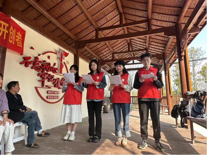 下午3时30分左右,双方来到党群议事长廊,召集当地群众,共同开展雷锋月相关活动。支部的学生党员们为素心村的普通群众带来精心排练的《雷锋日记·节选》朗诵节目。该朗诵节目以艺术表达的形式向村民们重现雷锋同志助人为乐的人生片段,以村民喜闻乐见的形式讲雷锋、诵雷锋、宣传雷锋,让雷锋精神飘扬永远常存在我们的心中,得到现场群众的一致好评。朗诵结束后通过“院坝会”主题宣讲的方式,双方共同学习了党的二十届二中全会精神和习近平总书记对深入开展学雷锋活动作出的重要指示精神,双方支部的党员们纷纷围绕“学雷锋·办实事·做先锋”的主题,就如何“更好发挥党员、干部模范带头作用,让学雷锋活动融入日常、化作经常”,开展深度交流讨论。