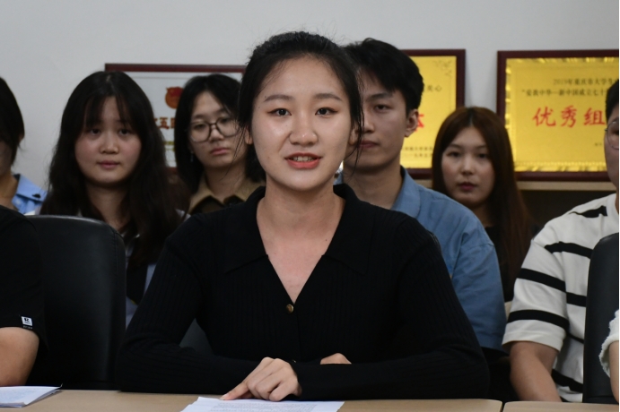 第二届中心成员代表梅浩冉发言,与新成员分享自己过去一年的工作心得,鼓励新成员们本色鲜明,提高政治站位;胆大心细,主动担当作为;用心用情,提升服务效能。