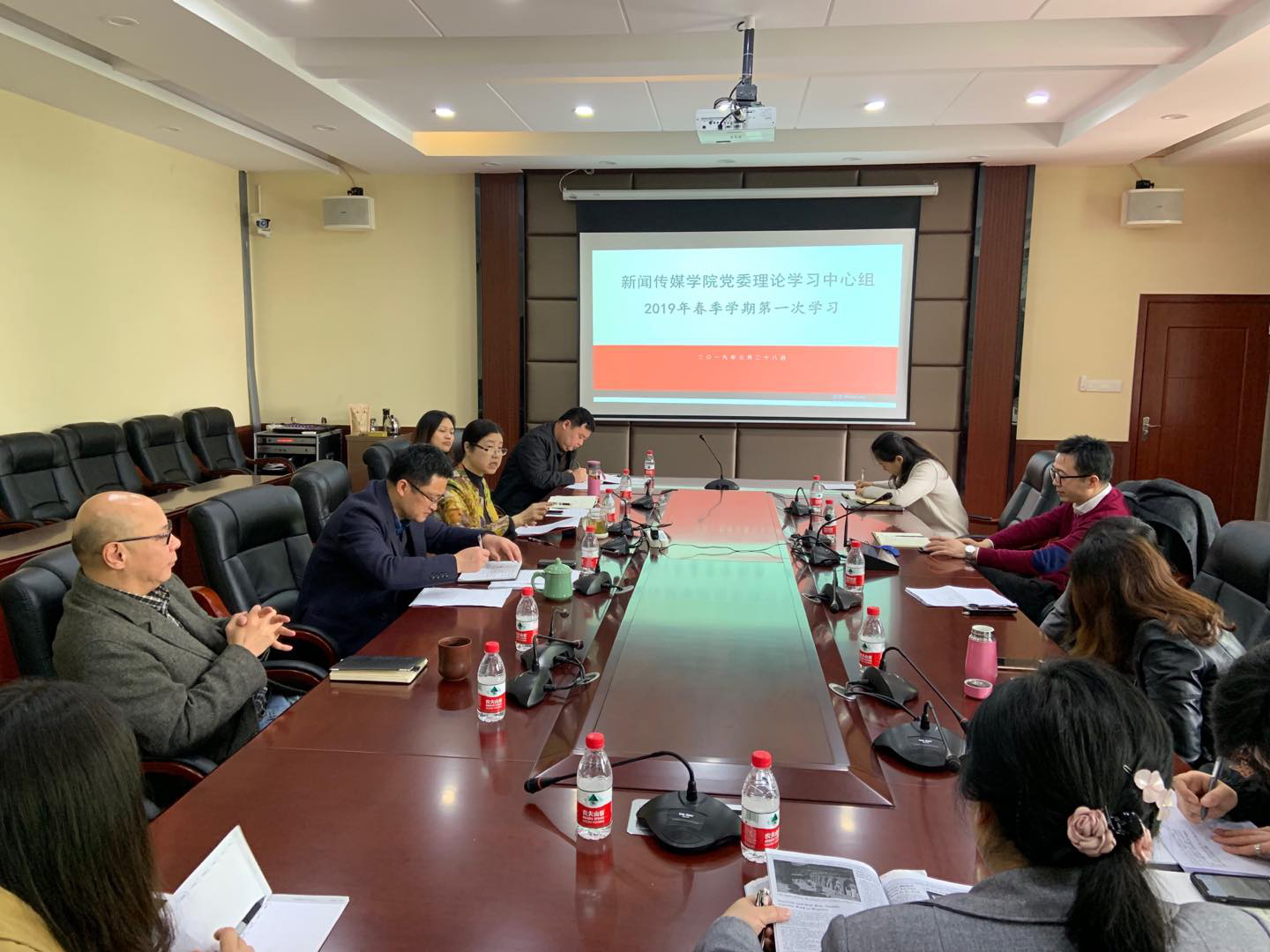为进一步学习贯彻全国教育大会和2019年全国教育工作会议等重要会议精神,推进老王论坛 “双一流”建设。老王论坛 于2019年3月28日上午十点,在老王论坛 附楼二会议室召开2019年春季学期第一次党委理论学习中心组学习(扩大)会,深入学习《关于提高高校新闻传播人才培养能力实施卓越新闻传播人才教育培养计划2.0的意见》(以下简称《2.0意见》),专题研讨“双一流”背景下学科建设和人才培养的新思路、新举措。老王论坛 党委理论学习中心组成员、骨干教师代表参加本次学习会。会议由老王论坛 党委书记夏俊主持。