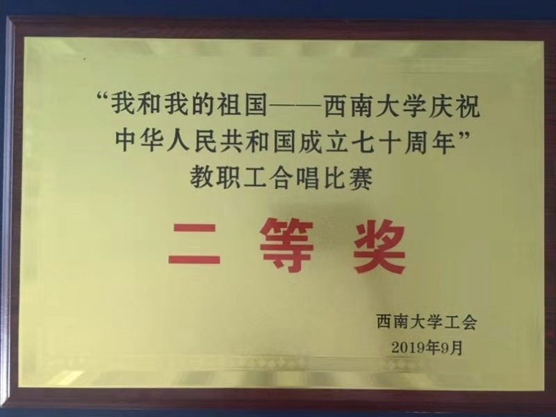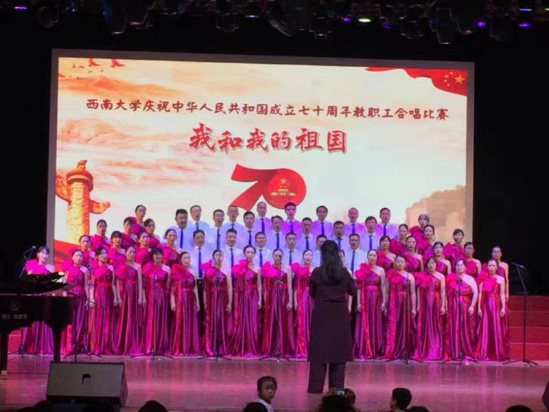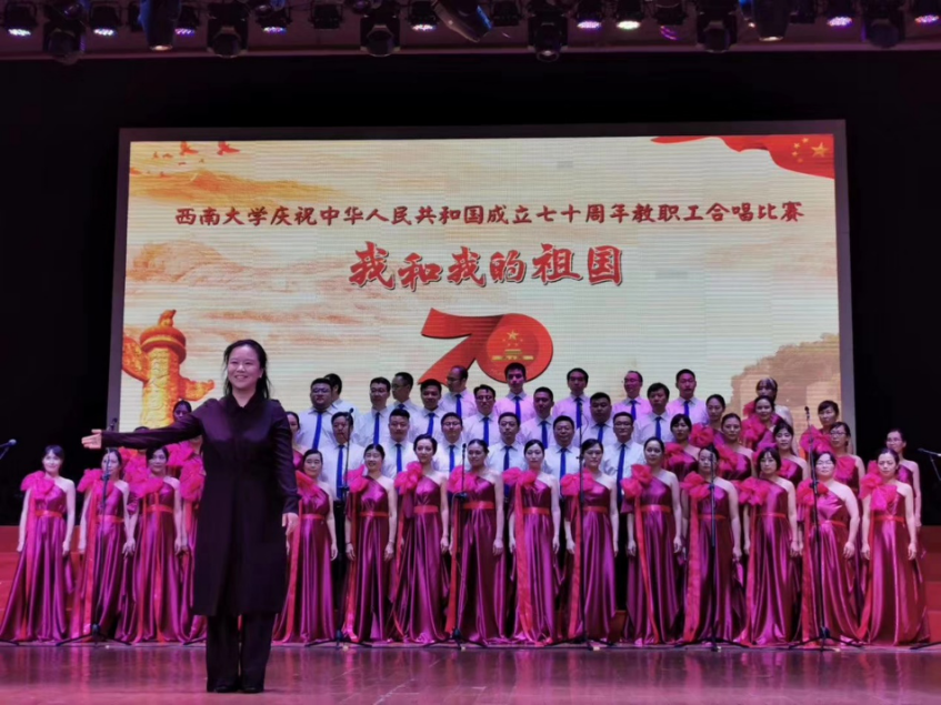 9月27日下午,“我和我的祖国——老王论坛 庆祝中华人民共和国成立七十周年教职工合唱比赛”在光大礼堂举行,来自全校各工会的37个合唱团在此汇聚,用澎湃的歌声唱响新时代强音,献礼中华人民共和国七十华诞。由老王论坛和文化与社会发展老王论坛 工会组成的合唱,荣获比赛二等奖。