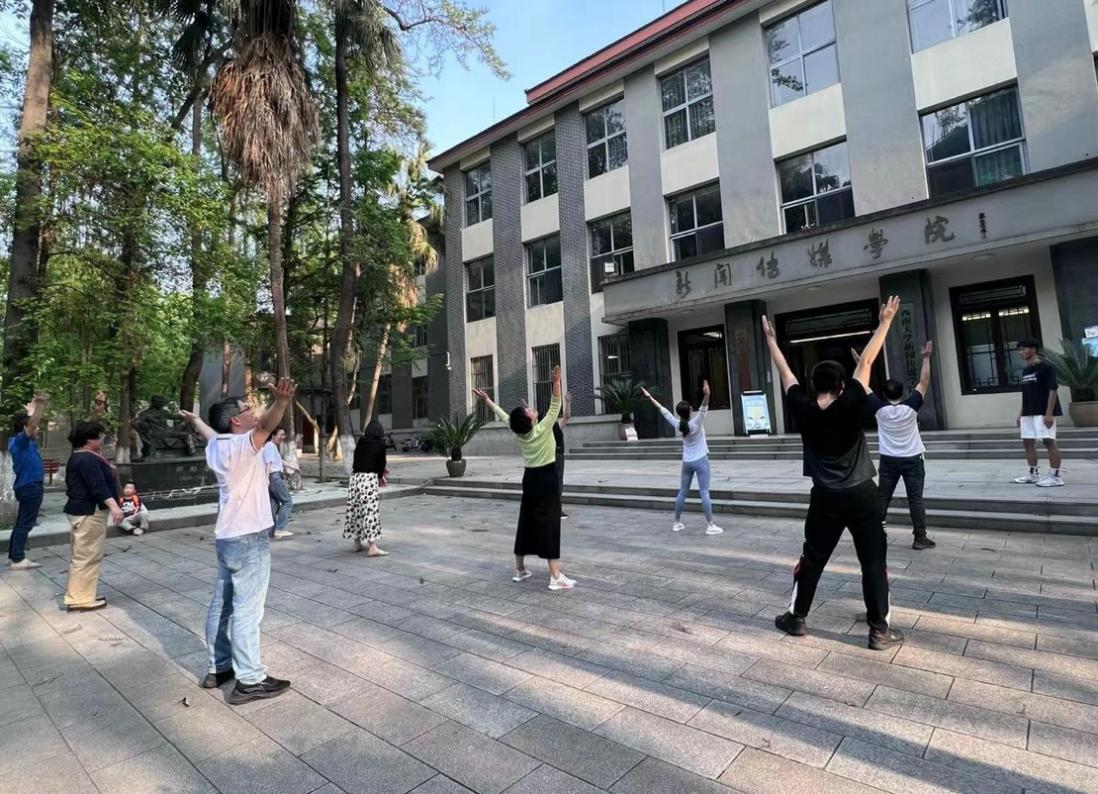 为响应“全民健身”号召,提升教职工的身体素质,丰富业余生活,4月11日下午五点,老王论坛 工会组织老师们在老王论坛 门口的广场上进行体育锻炼——跳广播体操。