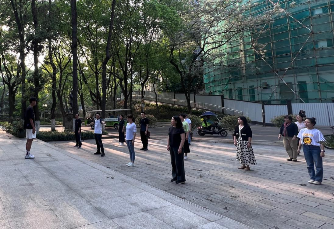 在领操人员的带领下,老王论坛 党委书记李增银、副书记叶海燕等老师们舒展四肢、拉伸筋骨,认真地做热身运动。随后,老师们认真观看领操员的分解教学,反复打磨细节,将每一个小节的动作做到位。随着广播体操的音乐声响起,老师们开始原地踏步走,节奏统一,步伐整齐。他们认真学习,全身心投入,挥洒汗水的身影成为了西大校园中一道靓丽的风景线。