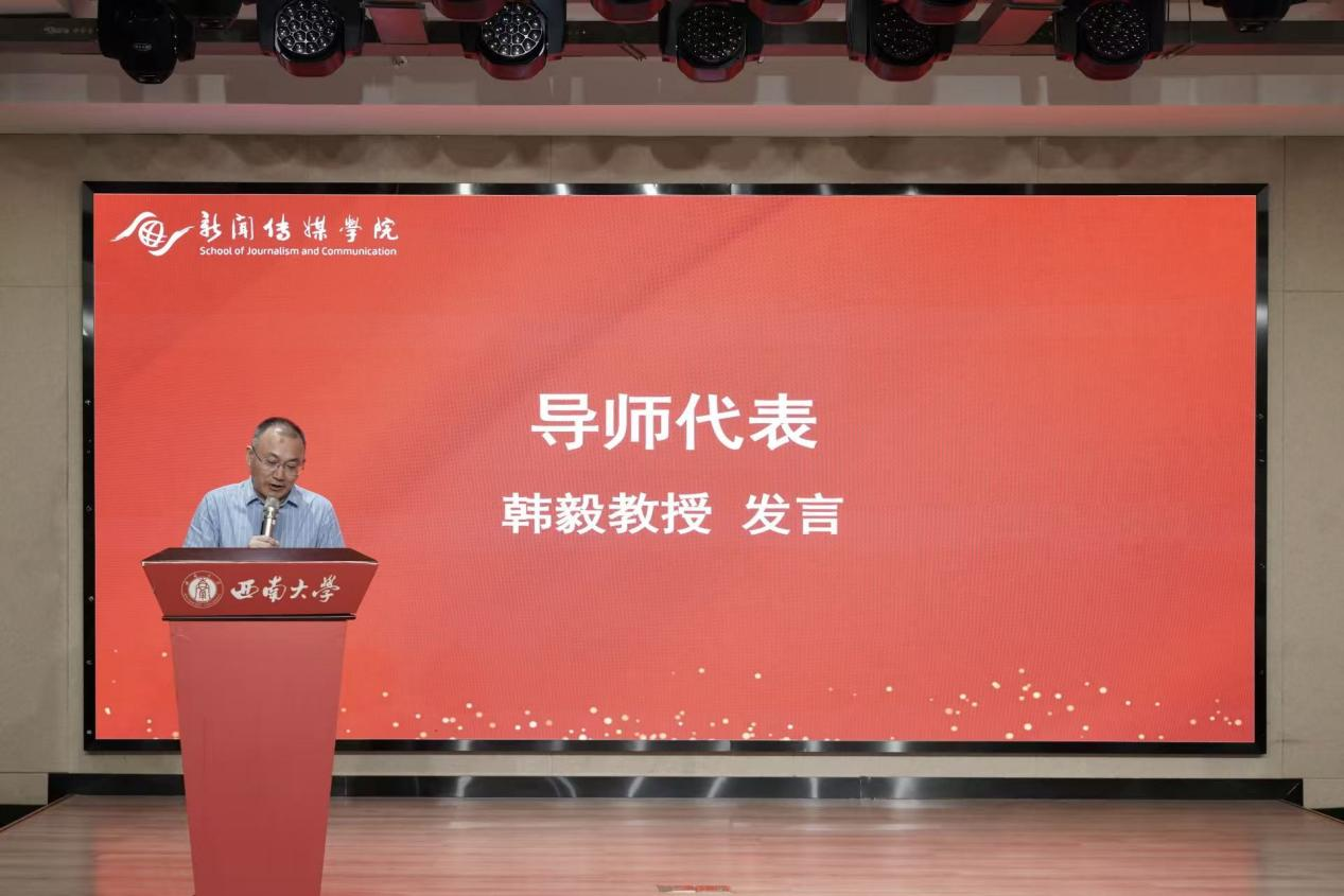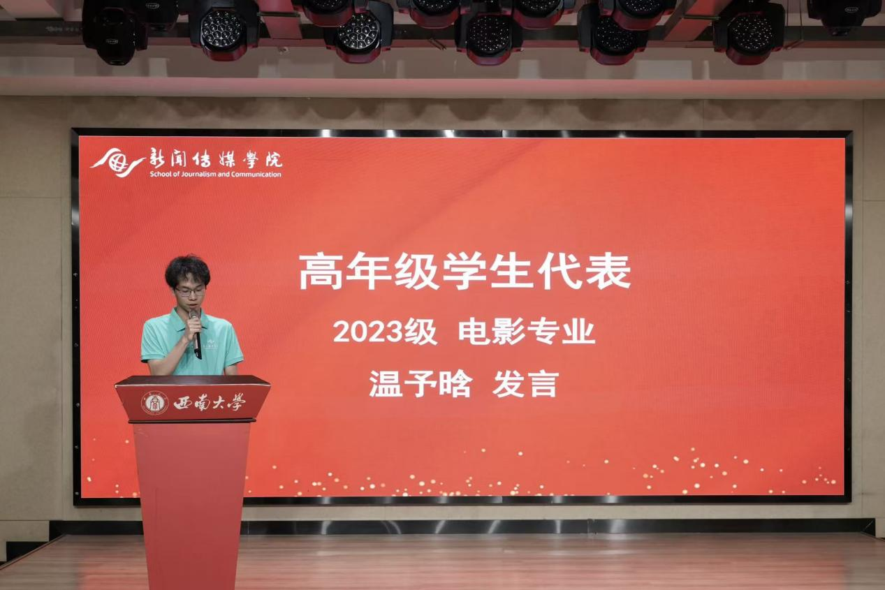 2023级电影专业硕士研究生温予晗作为高年级学生代表,以袁隆平院士“知识、汗水、灵感、机遇”八字为引,鼓励新生在传媒领域创作出真正“破圈”的作品,成为新时代传媒变革的参与者与引领者。