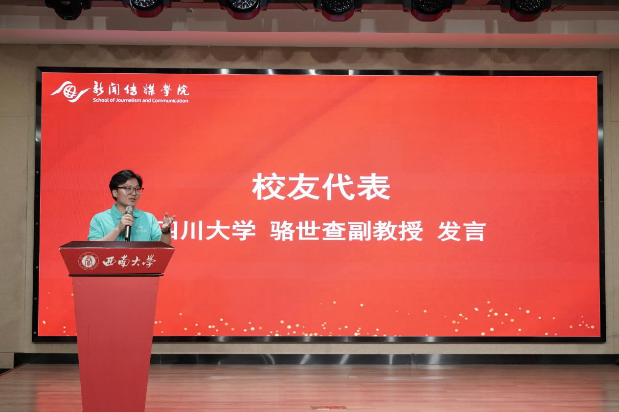 校友代表四川大学骆世查副教授在发言中梳理新闻传播学三阶段,