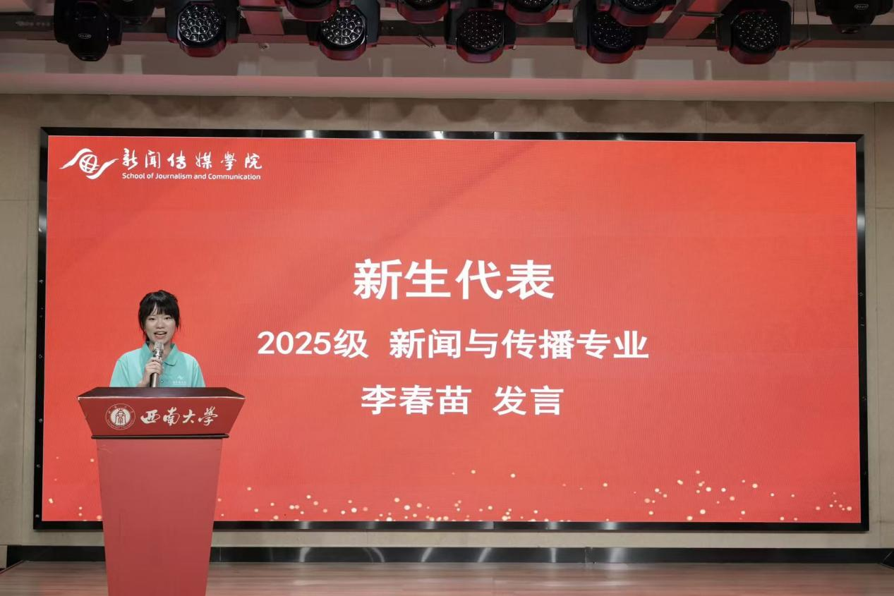 新生代表2025级新闻与传播专业硕士研究生李春苗分享了对研究生生活立德修身、明确目标的两点期待,呼吁同学们保持谦逊严谨的治学态度,踏实走好学术之路