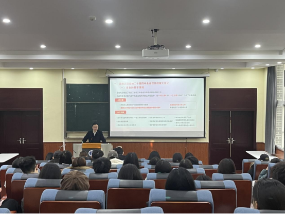 为深入学习贯彻党的二十届四中全会精神,进一步增强青年学子对党和国家事业发展的使命感和责任感1127日上午,学校党委常委、副校长廖晓衡为学院2024级播音与主持艺术专业本科生上了一堂主题鲜明、生动深刻形势与政策课程,专题宣讲党的二十届四中全会精神。
