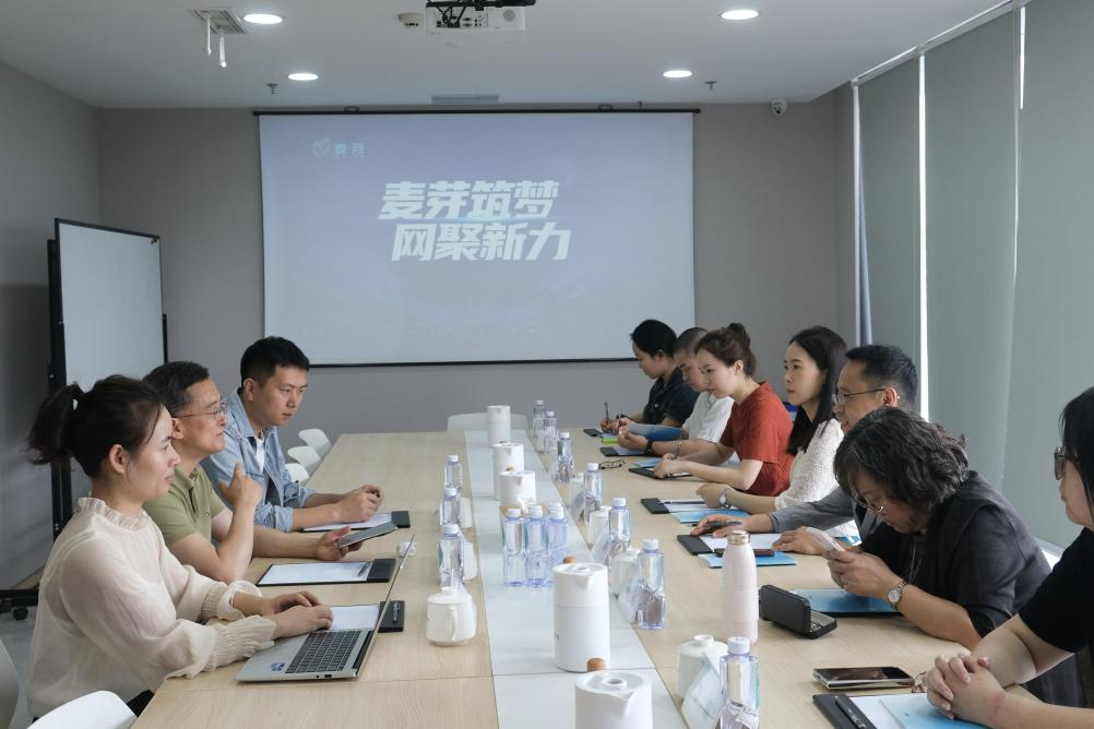 交流期间,在麦芽传媒有限公司党支部书记、副总裁何进陪同下,赵剑院长一行分别参观了网格化搭建的微短剧拍摄工作基地以及达人直播间,了解其运作模式及规模。就其庞大的前期统筹与后期制作团队的设置与管理工作,双方展开了深入的交流与探讨。最后,麦芽方面就其公司成立的历史沿革、重大成就以及社会责任等方面向调研团队进行了系统的总结。